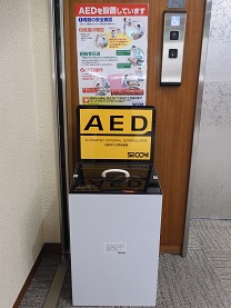 1階エレベーターホールに加え、2階・4階エレベーターホールにAED(自動体外式除細動器)を2台追加設置いたしました。