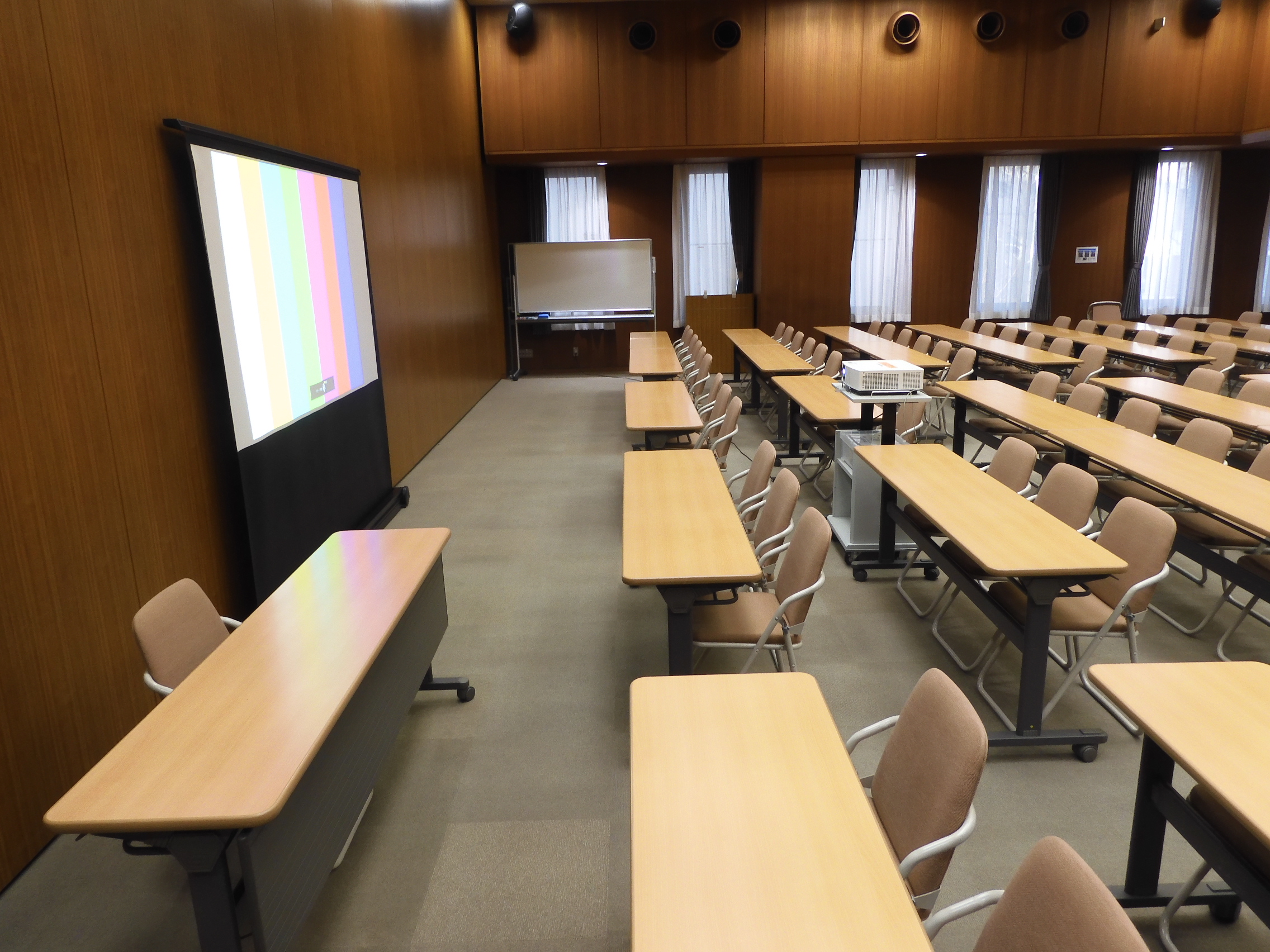 204会議室で当館貸出器材のプロジェクターをご利用される際は、可動式のプロジェクターをお貸出しいたします。スクリーン(100インチ、16:9)は会議室内に引上式のものがございますので、そちらをご利用ください。