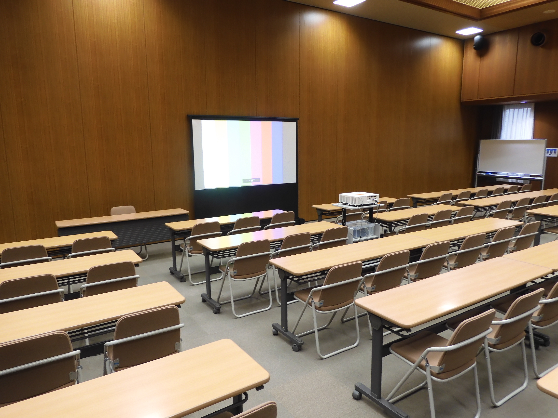 204会議室で当館貸出器材のプロジェクターをご利用される際は、可動式のプロジェクターをお貸出しいたします。スクリーン(100インチ、16:9)は会議室内に引上式のものがございますので、そちらをご利用ください。